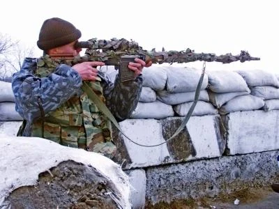 Russian soldier aiming a Dragunov SVD