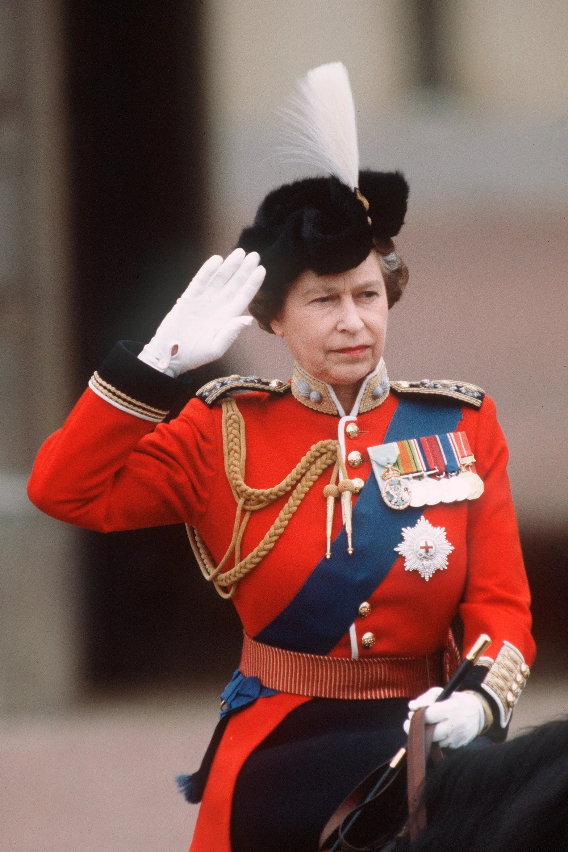 | Elizabeth II on horseback at the 1971 Trooping the Colour | |