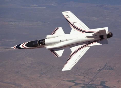 One of the X-29A prototypes in tests by NASA