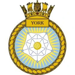 HMS York was a Batch III Type 42 destroyer of the Royal Navy. Launched on 20 June 1982 at Wallsend,[4] Tyne and Wear and sponsored by Lady Gosling, York was the last Type 42 ordered. The ship's crest was the White Rose of York, and the "red cross with lions passant" funnel badge was derived from the coat of arms of the City of York. With a maximum speed of 34 knots (63 km/h; 39 mph), she was the Royal Navy's fastest destroyer.[3]