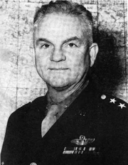 Williams became commanding general of the Third Air Force, a troop carrier air force, based at Greenville, South Carolina in April 1946.[1] The Third Air Force was inactivated in November 1946 and Williams then assumed of the Ninth Air Force at Greenville. In August 1947 he became commanding general of the Second Air Force, with its headquarters at Offutt Air Force Base, near Omaha, Nebraska. In July 1948, the Second Air Force was absorbed by the Tenth Air Force, and Williams became its commander. Based at Fort Benjamin Harrison near Indianapolis, Indiana, the Tenth Air Force was responsible for protection of the mid west against attacks from the north and west.[2] In January 1950 its headquarters moved to Selfridge Air Force Base, Michigan. In April 1950 Williams was transferred to Air Force Headquarters, for temporary duty as a member of the Air Force Personnel Board.[1] He retired on 30 April 1950 as a major general and died on 3 March 1968.[3]