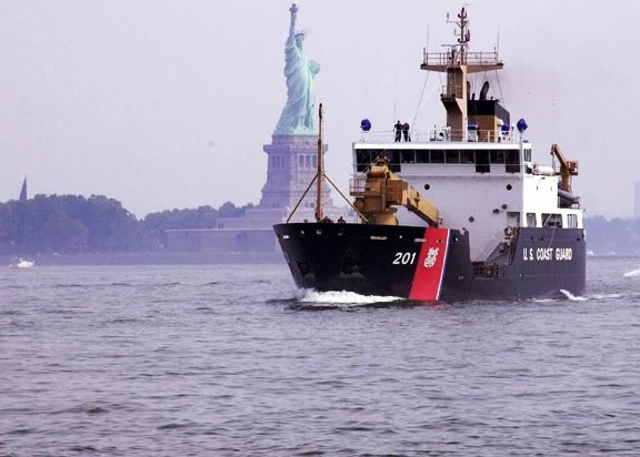 ![]() USCGC Juniper sailing past the Statue of Liberty. | |